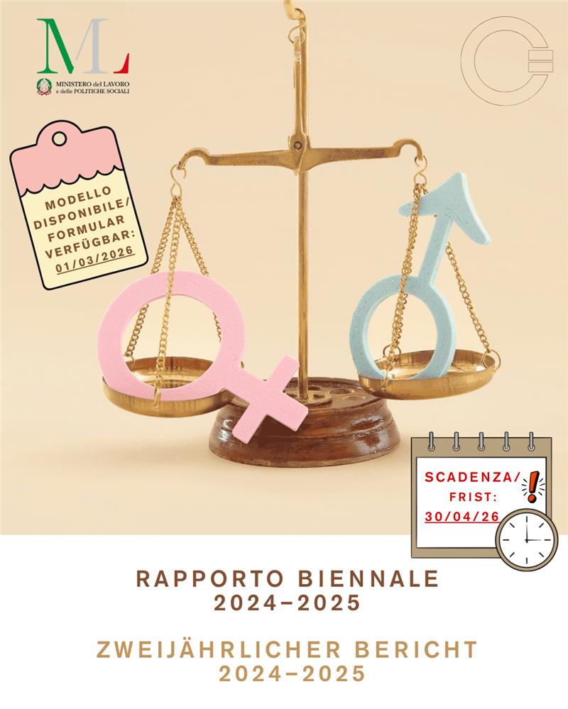 Öffentliche und private Unternehmen mit mehr als 50 Beschäftigten sind verpflichtet, den periodischen Bericht über die Situation des männlichen und weiblichen Personals für das Biennium 2024–2025 zu erstellen und zu übermitteln.